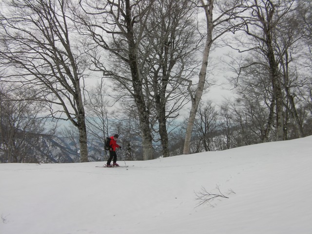 山頂に向かうと反対側から1名山スキーヤーがやってくる.