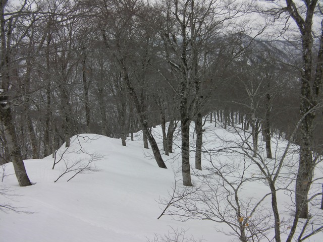 標高1350mまで登るとさらに傾斜が緩み,尾根が明瞭となる.