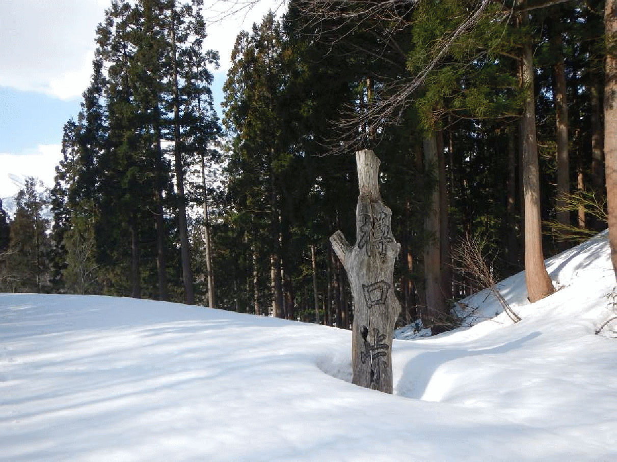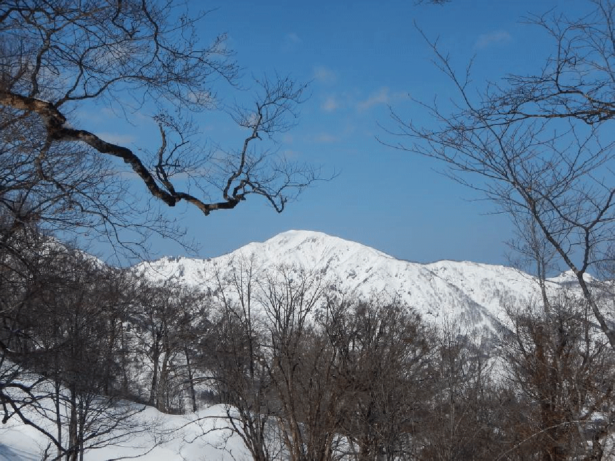 定例山行の守門岳には体力的に自信がない……春はやはり大花山に行かなくちゃ、と出かけてみる。天気は晴れ。小玉川集落から樽口峠を経て大花山に向かうルートを行く。ツボ足で登れそうだ。わらび園の雪斜面を登るが、途中で車道にぶつかり、樽口峠の展望台の駐車場は大きく除雪されていた。