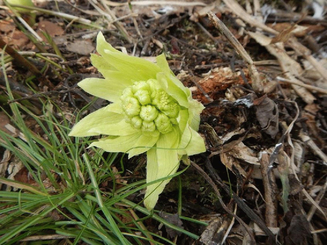 送電線の下で見つけたフキノトウ。山菜の季節がやってくる。