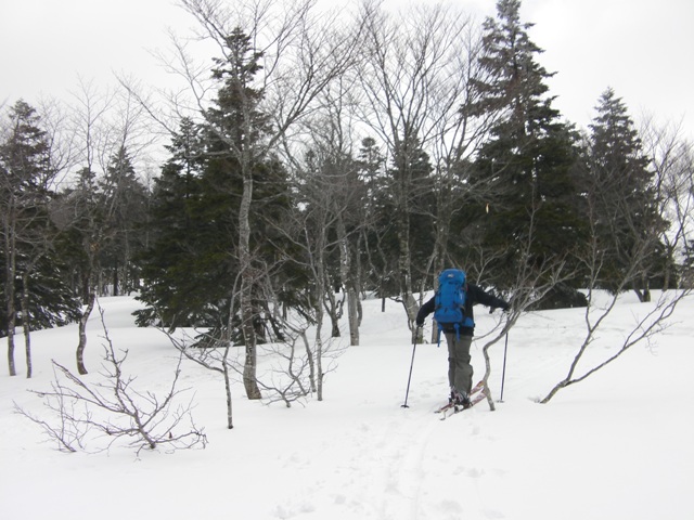 すぐに緩やかな尾根に出て,スキーをセットする.