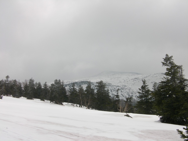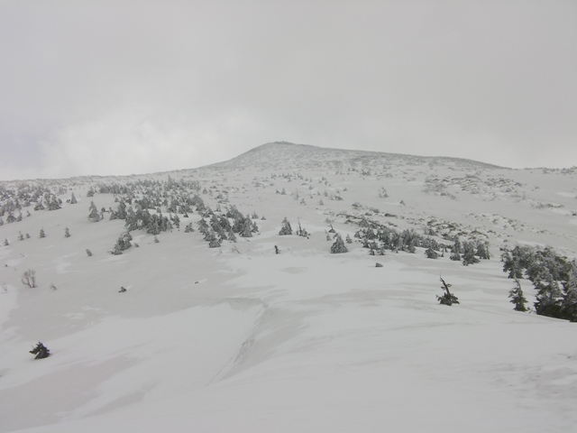 【田代平(標高1270m夏道分岐点付近)から山頂(中央奥のピーク)】