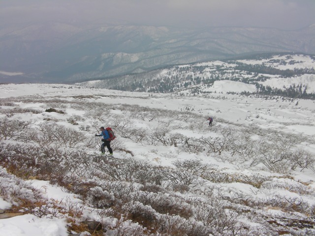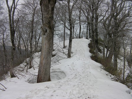 標高1100mくらいにちょっとしたこぶ斜面があり,それを巻くと幾分尾根が集約される.