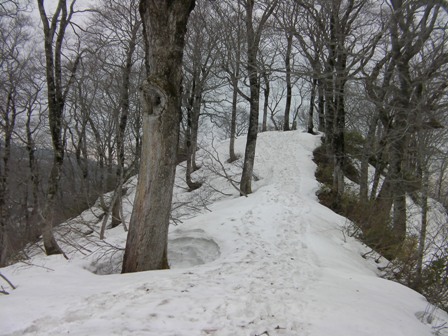 【田代平山荘先の尾根(標高1340m付近)から山頂】