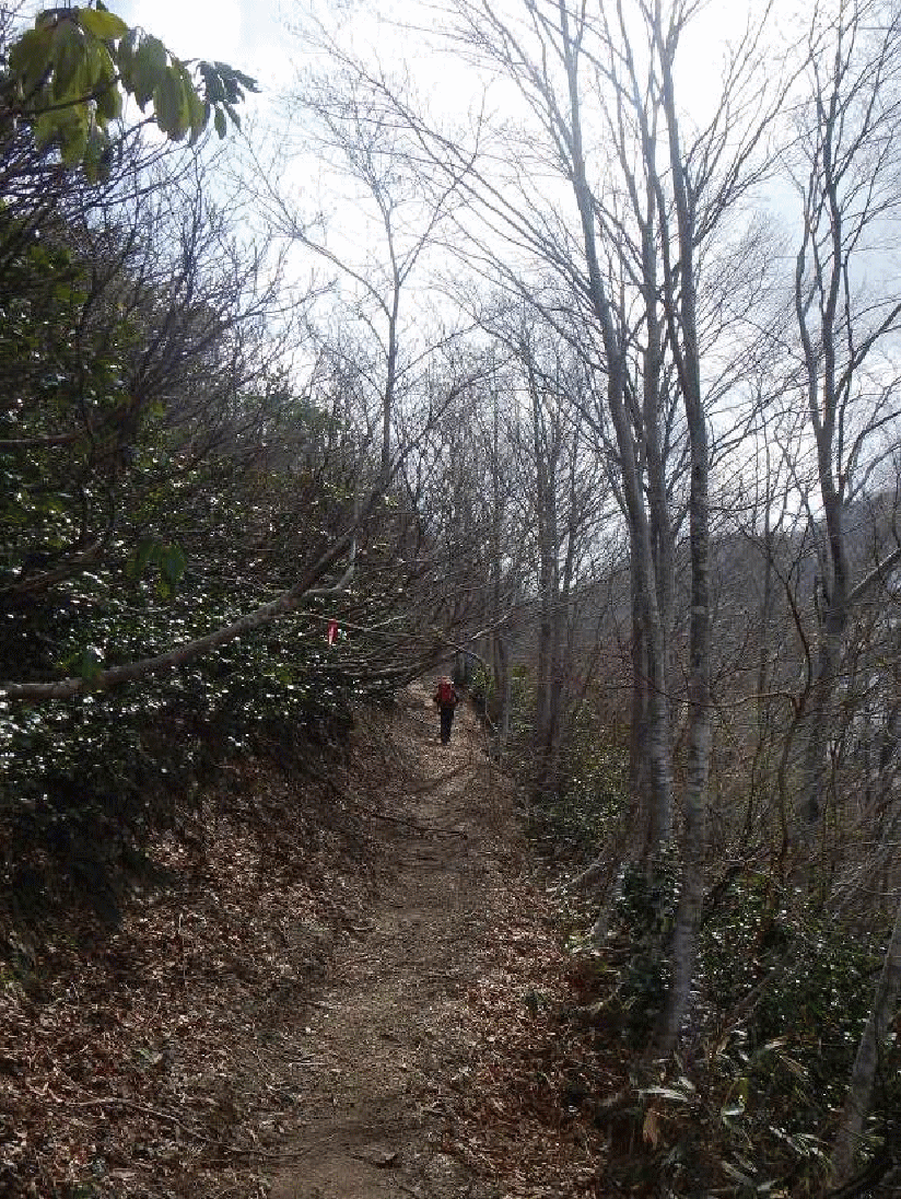 <尾根分岐までは夏道を歩く。雪はない>