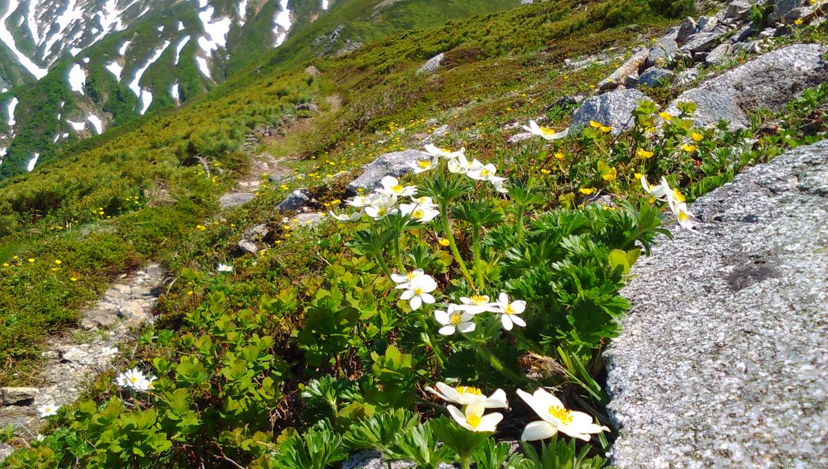 今年は雪が少なく季節が早く進んでいるようなので、残雪と咲き始めの高山植物を見に行った。