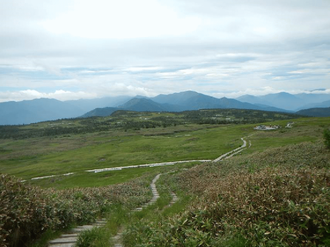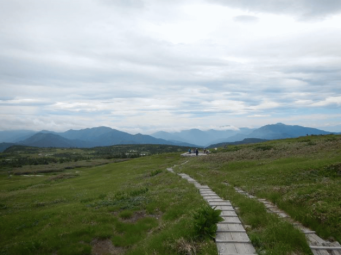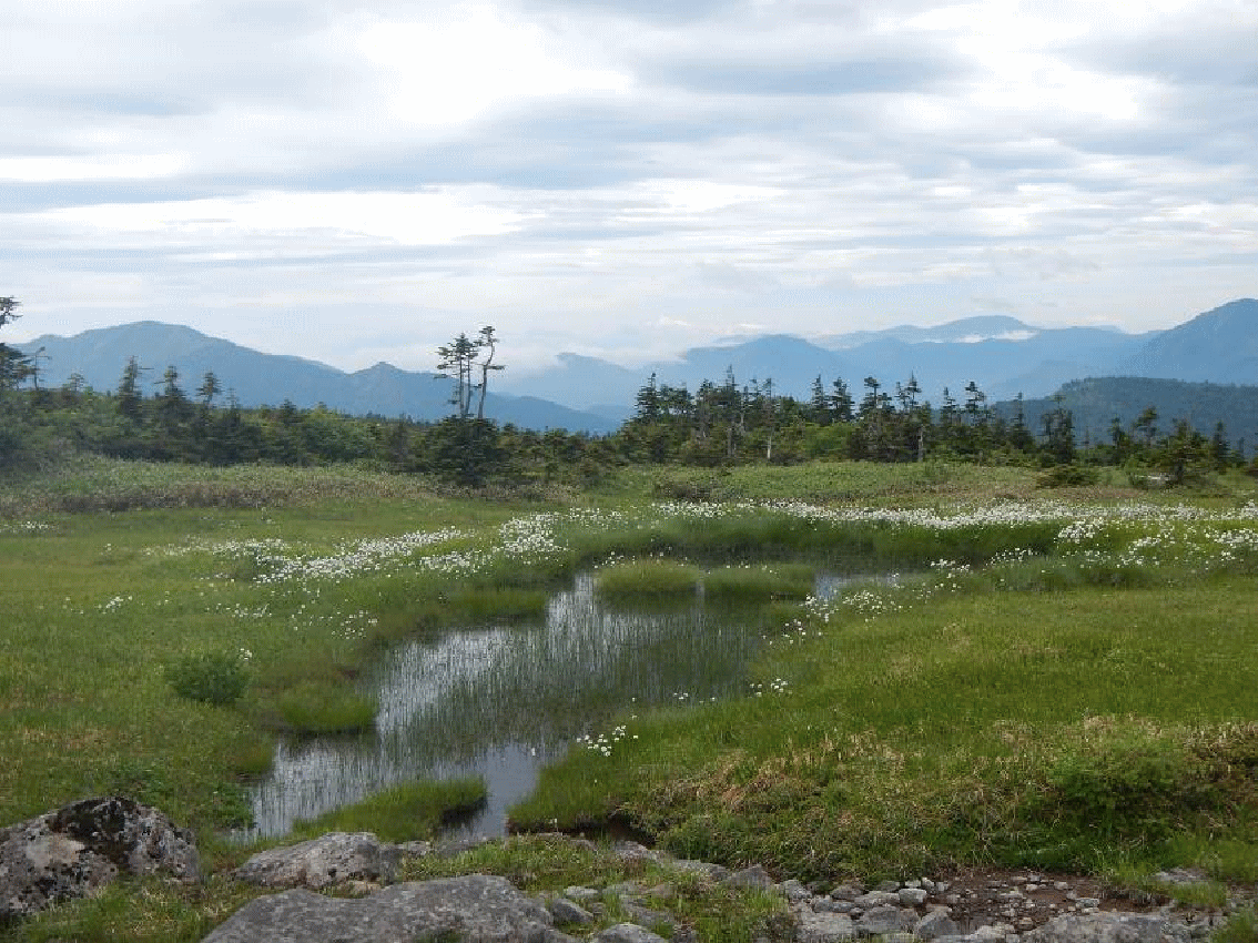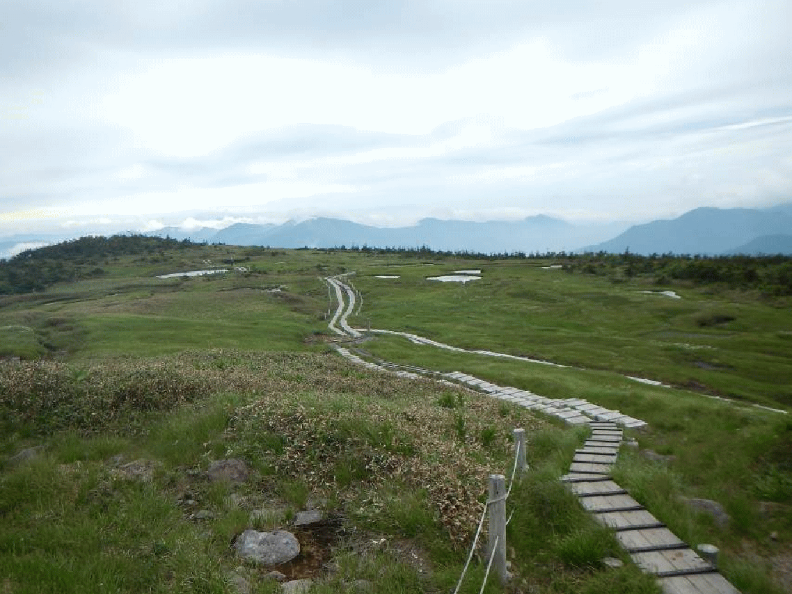 ふと、苗場山に行こうかな、という気になり、小赤沢コースから登った。登山口から2時間くらいで山頂湿原の端っこに出た。池塘が点在する湿原が山頂まで続いていく。広い山頂台地なので人もあまり気にならない。梅雨の時季、ほんのちょっとの晴れ間の中、素晴らしい光景を楽しむことができた。