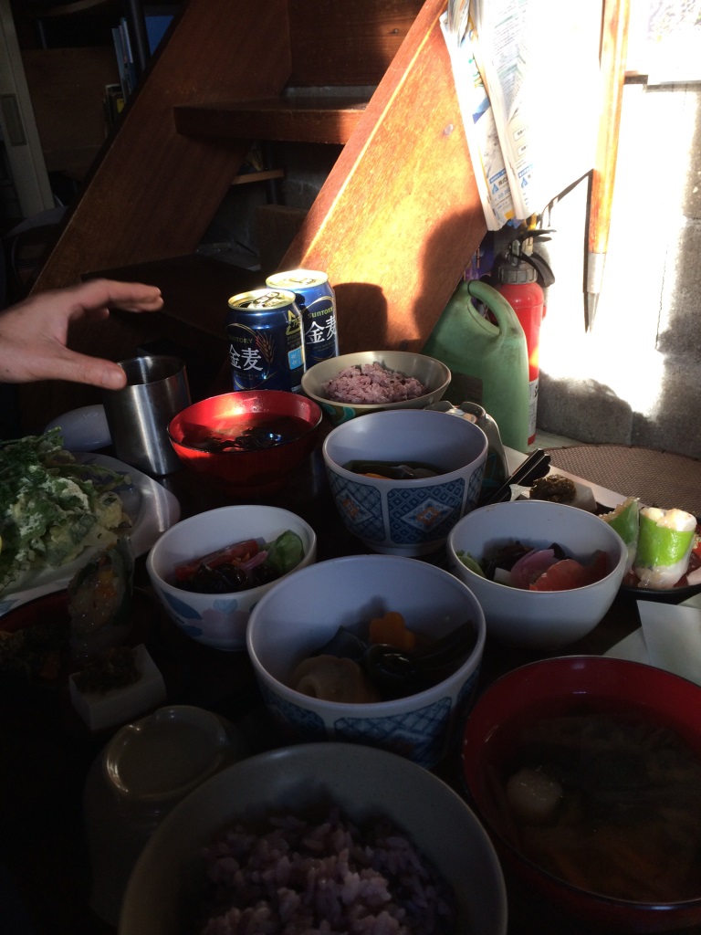 あまりの絶景にヤッちゃん差し入れの”エビス”で乾杯をする人達。
