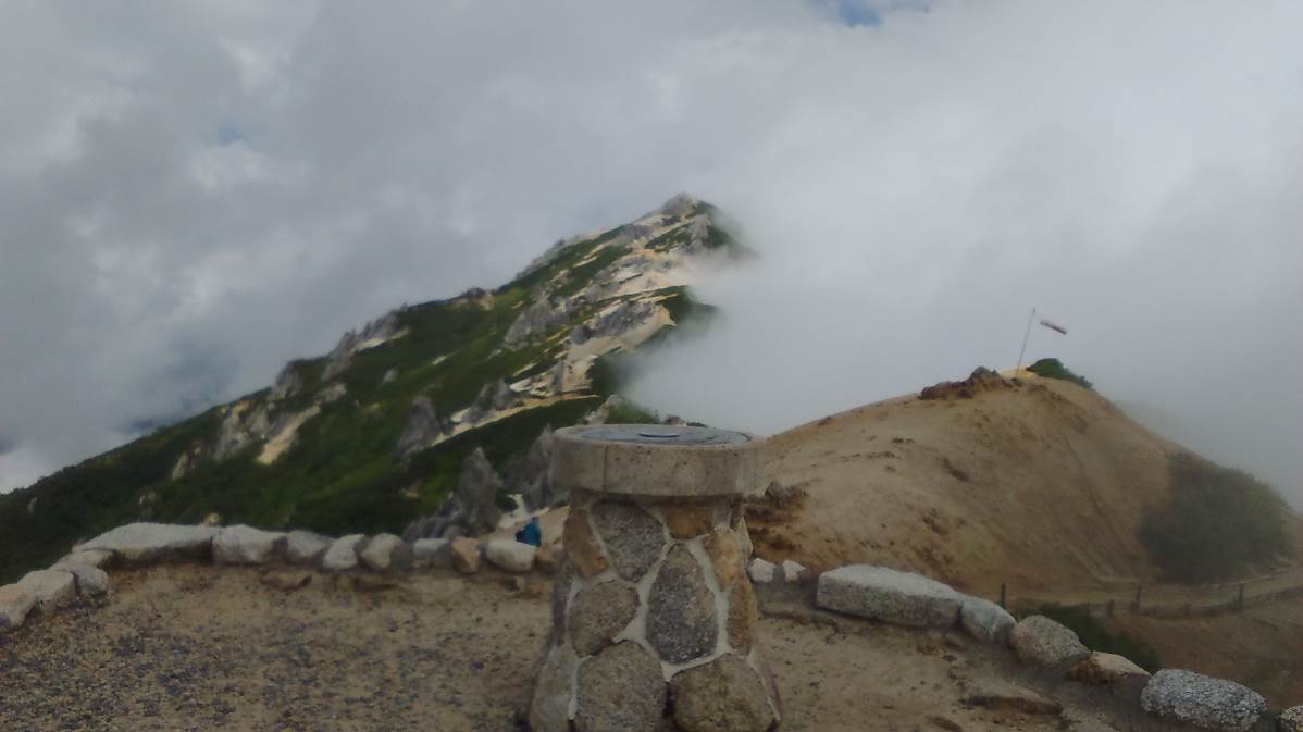 1日目 台風一過のウィークデーとあって人も少ない。燕岳から大天井岳への縦走路からの眺望を楽しみにしていたが雲が多く高瀬川対岸の山は良く見えなかった。大天井岳頂上近くの大天荘テント場から雲の切れ間に穂高〜槍の稜線が大屏風のように見えた。