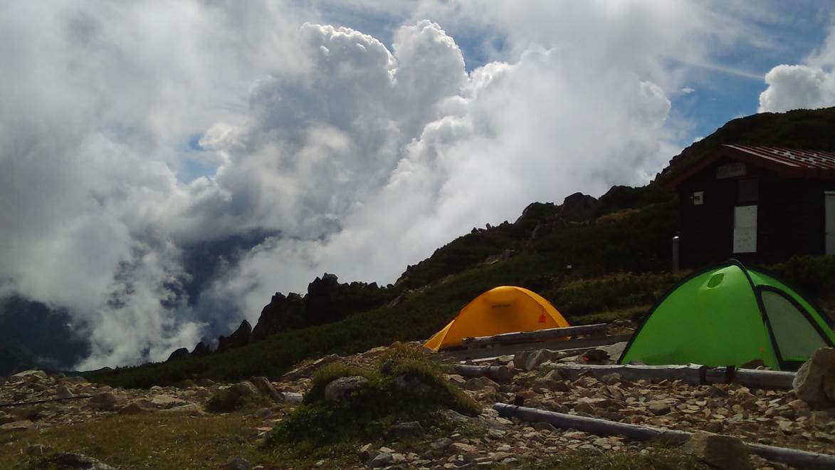 大天荘テント場では小屋のトイレを使用するがトイレの清潔さには感激した。