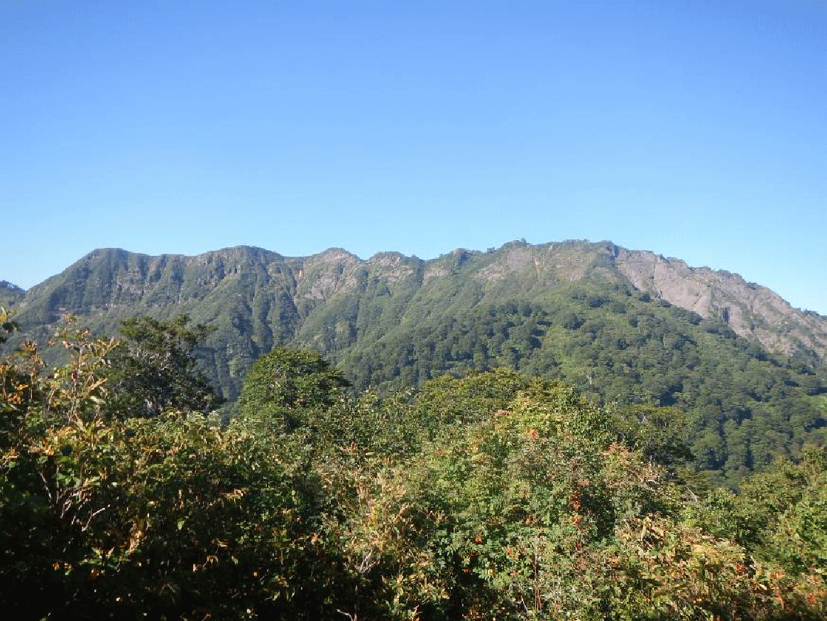 <叶ノ高手を過ぎたあたりからの会津朝日岳>