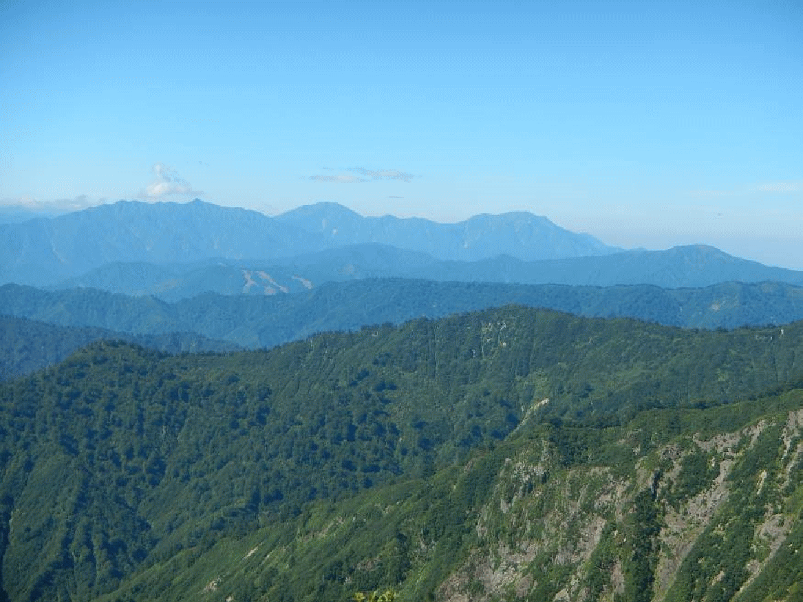 <山頂からの越後駒ヶ岳、中ノ岳、丹後山方向>