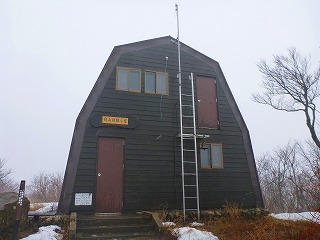 <山頂小屋もこんな感じ> <下山前に記念撮影>