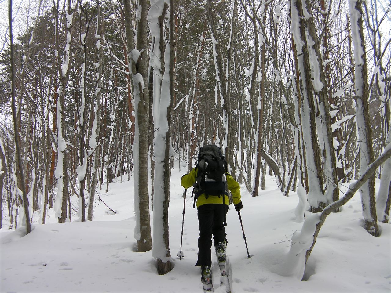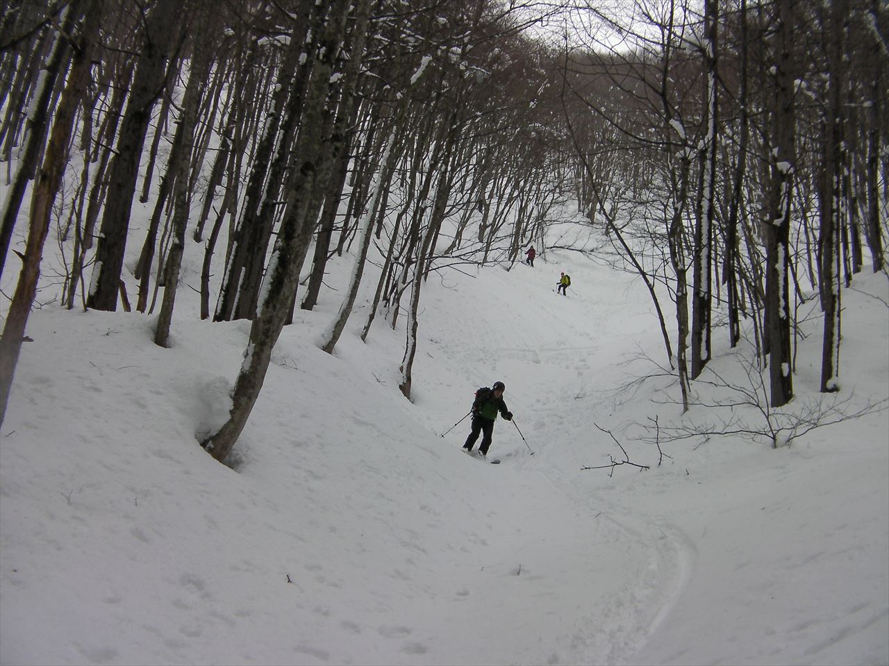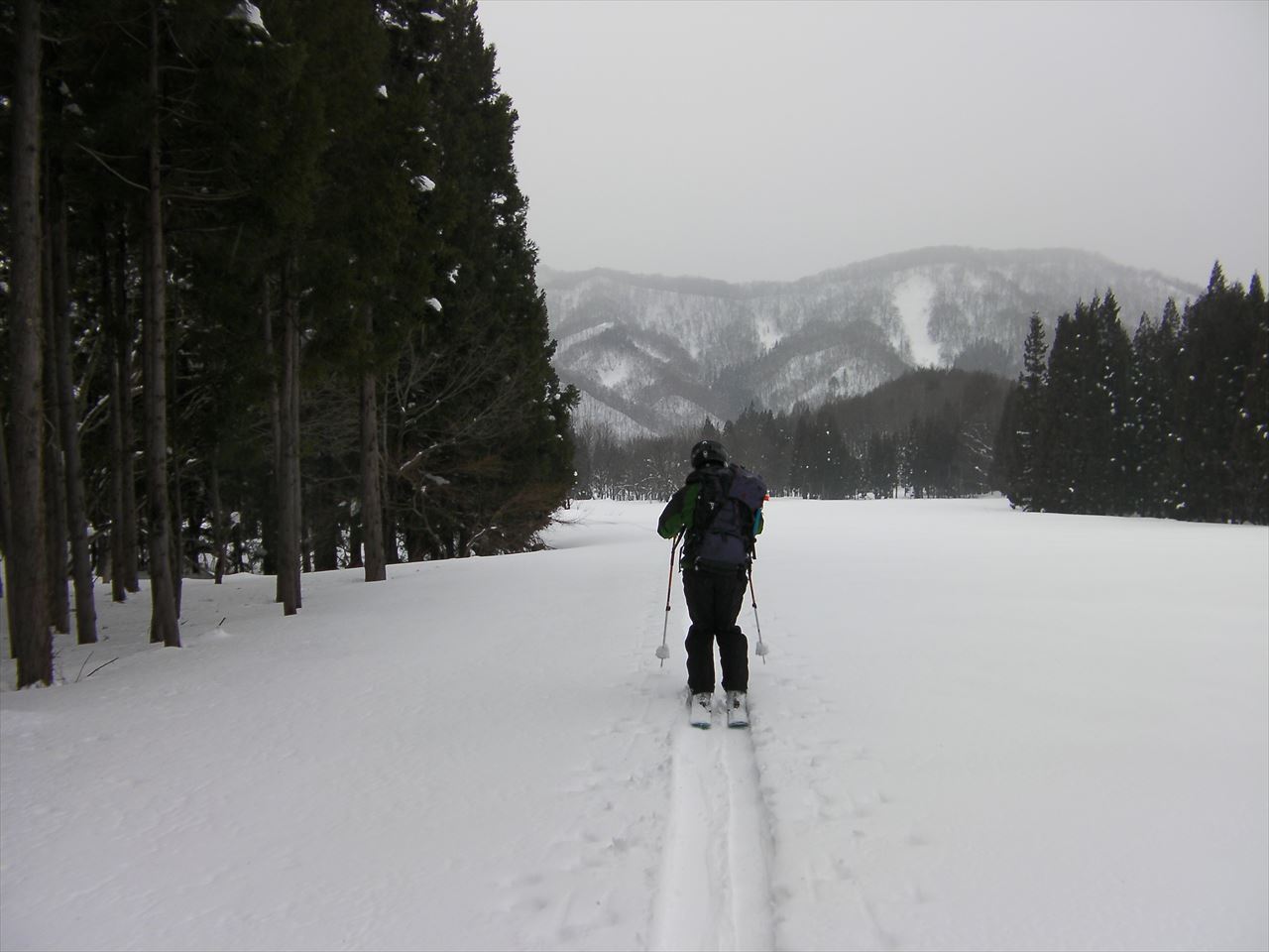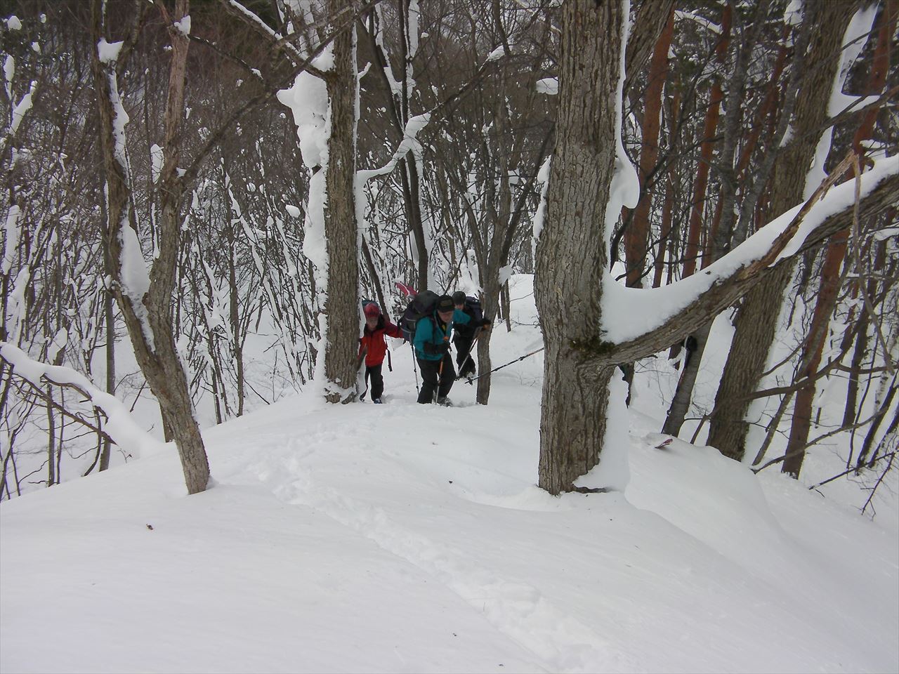 帰りの登り返しは即却下,黄金沢の林道に滑り降りることにする.