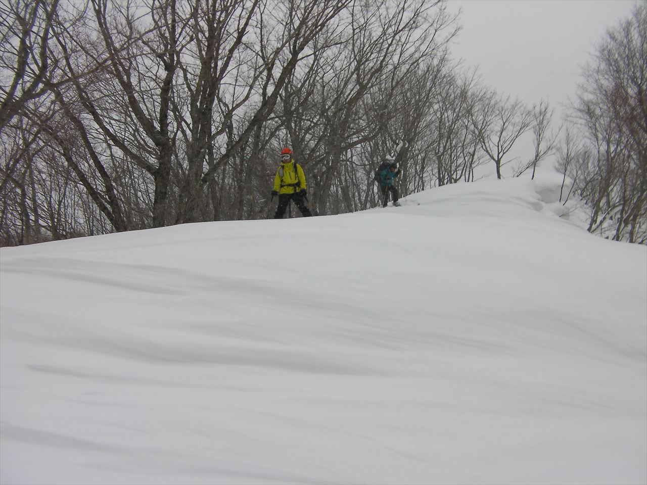 1156m標高点から先の尾根は,左側に雪庇ができているし,風による段差が滑りにくく,修行僧となる.