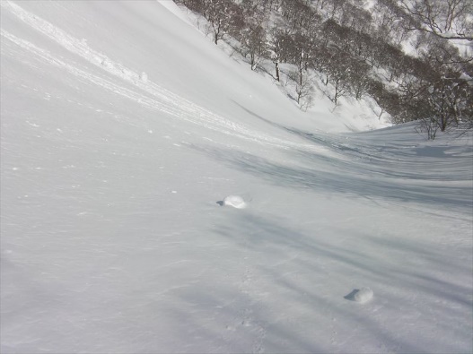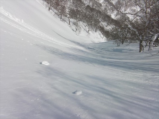 雪は雪崩れる心配はないが,ずっとラッセルである.