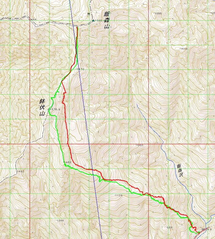 1462m標高点09:59 − 鉢伏山山頂1576m 10:21 − 飯森山手前分岐11:03〜11:18 − 駐車場12:45
