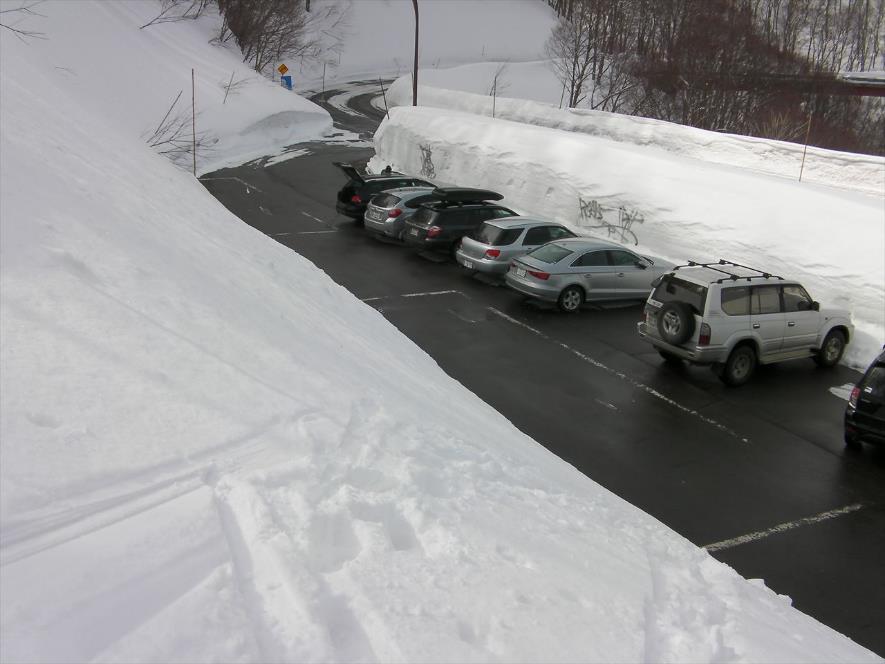 駐車場に近づくとさすがに雪は少しだけ重くなる.