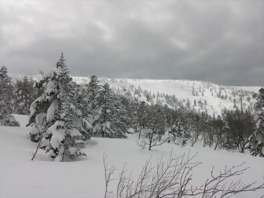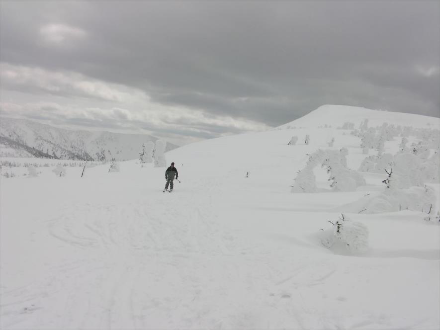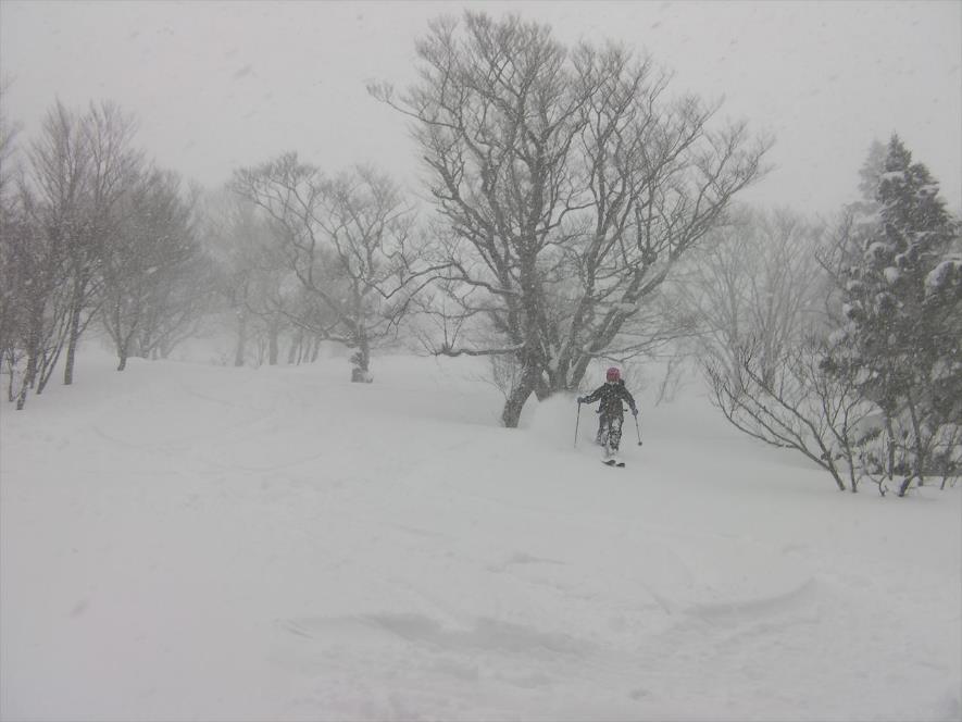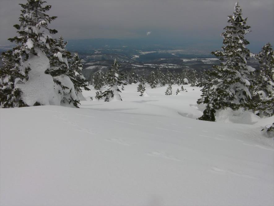 どこでも滑り放題であるが,オオシラビソの周りにできる穴だけには注意しよう.