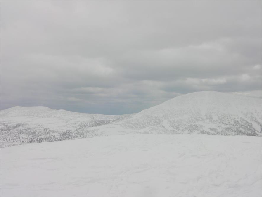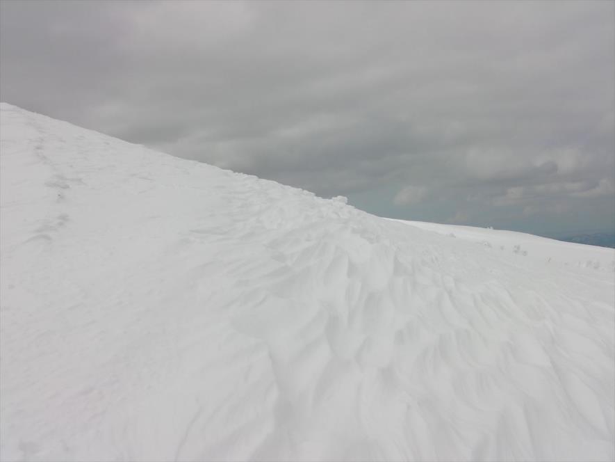 標高1200m付近から次第に尾根らしくなり,東側にはそれなりの雪庇ができている.
