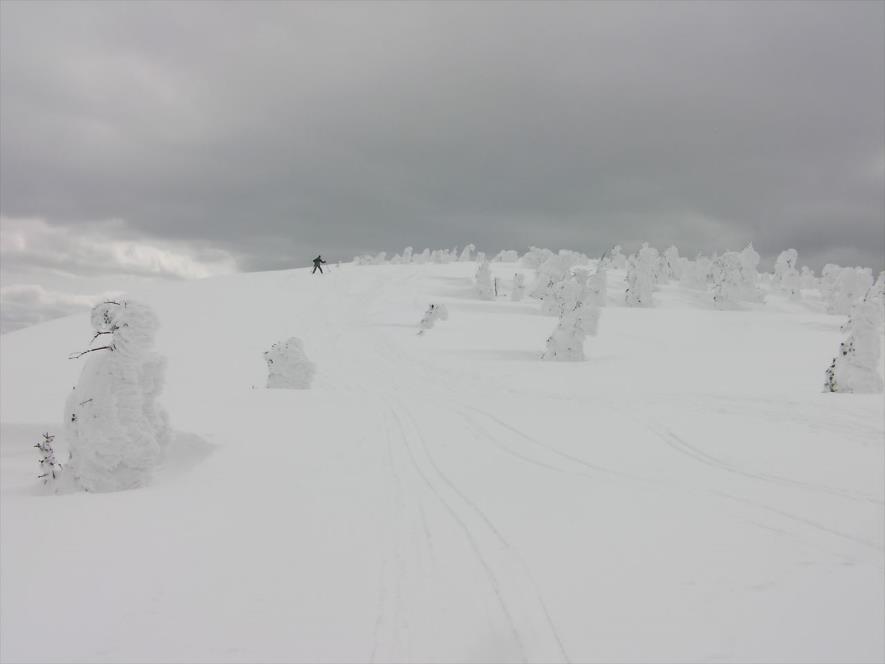 3月の八甲田は初めてであったが,今までで一番楽しめた.雪は意外にも連日新雪があり,粉4連発である.当初は秋田への移動日に森吉山に行く予定であったが,粉の誘惑には勝てず,最終日も八甲田で「白い粉人」となった.