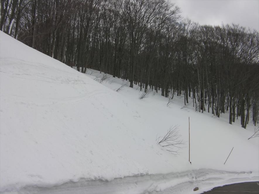 この日は道路近くの緩斜面になってもそれなりの粉で,滑りも歩きも十分に楽しめた.