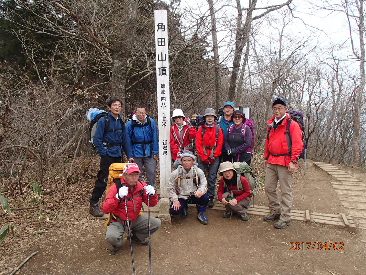 今年度最初の定例山行は角田山です。コースは春を告げるカタクリの花が咲き乱れる浦浜コース。多数の参加を得て賑やかな山行になりました。天気も良く、山頂も大勢の人で溢れておりました。春の陽だまりのなか、ゆっくり、まったりと過ごしてきました。担当Tさんの作る具沢山の豚汁は絶品でありました。ご馳走さまでした。