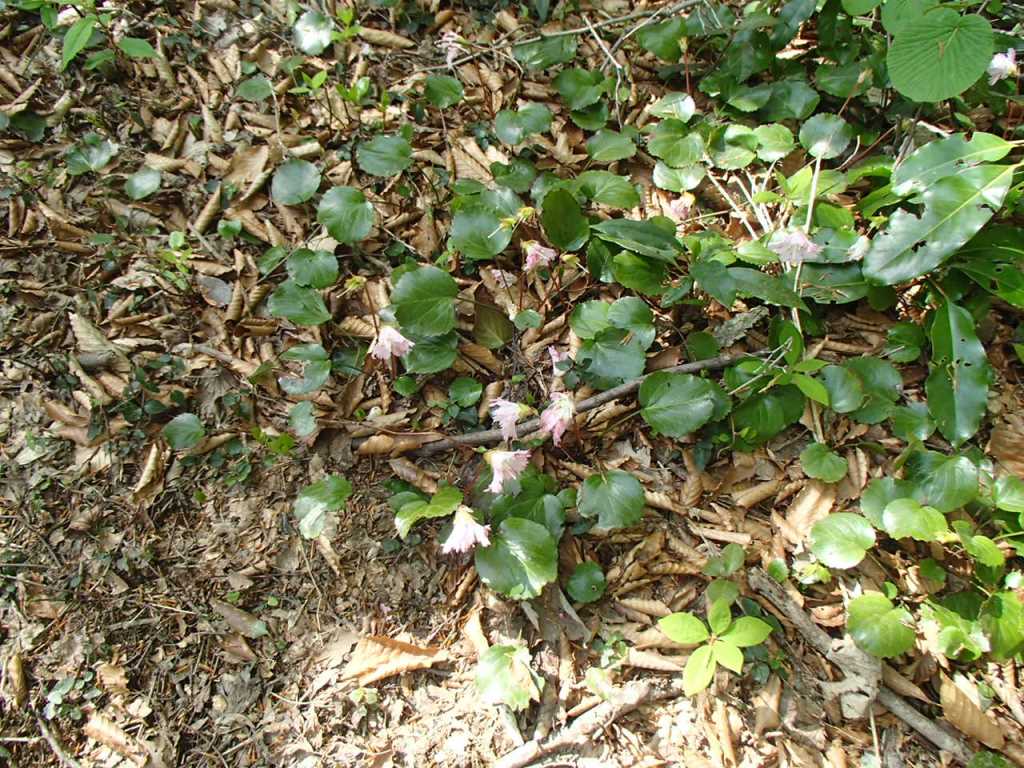 菅名岳の山頂に着いたころから、雲行きが怪しくなってきたので、休憩もそこそこに下山を開始する。椿平の分岐をどっぱら清水方面に急下降していく。沢に到着すると花わさびがあちこちで花を咲かしている。沢沿いの道から林道を経由し、やがて駐車場に戻ってきた。雨も小雨がぱらついたものの本降りにならず良かった。
