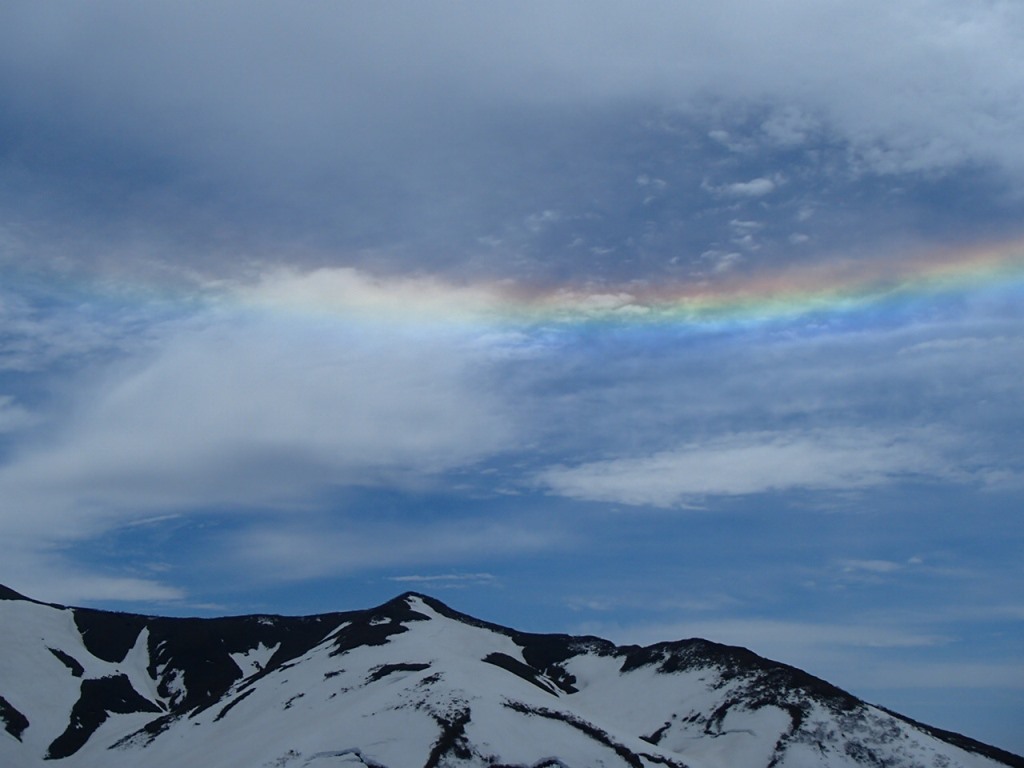 ふと空を見上げると色鮮かな彩雲が発生していた。ふわふわした気持ちとなり天空の中を歩いている気分でいたが、三番手山に登りついてようやく正気に戻る。