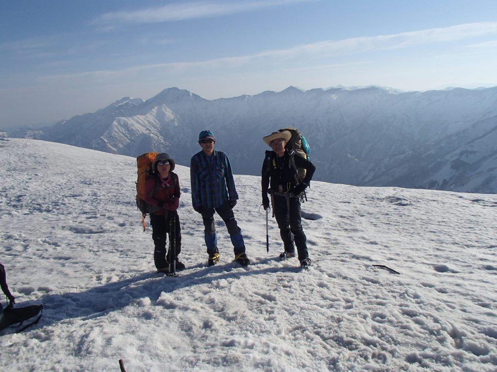 次の朝、テントを撤収し、雪庇崩壊地点に向かうと、予想に反し、崩れていた反対側の斜面の各度が緩く、意外と楽に通過できた。神様は15%の方を選んでくれたのだ。