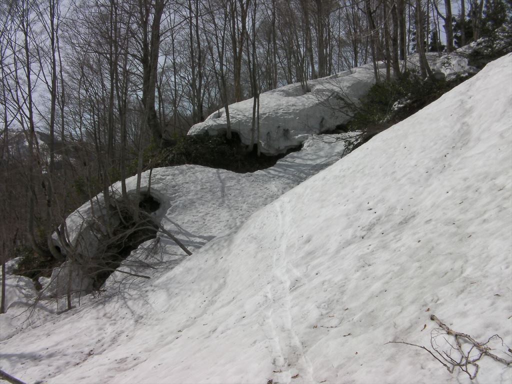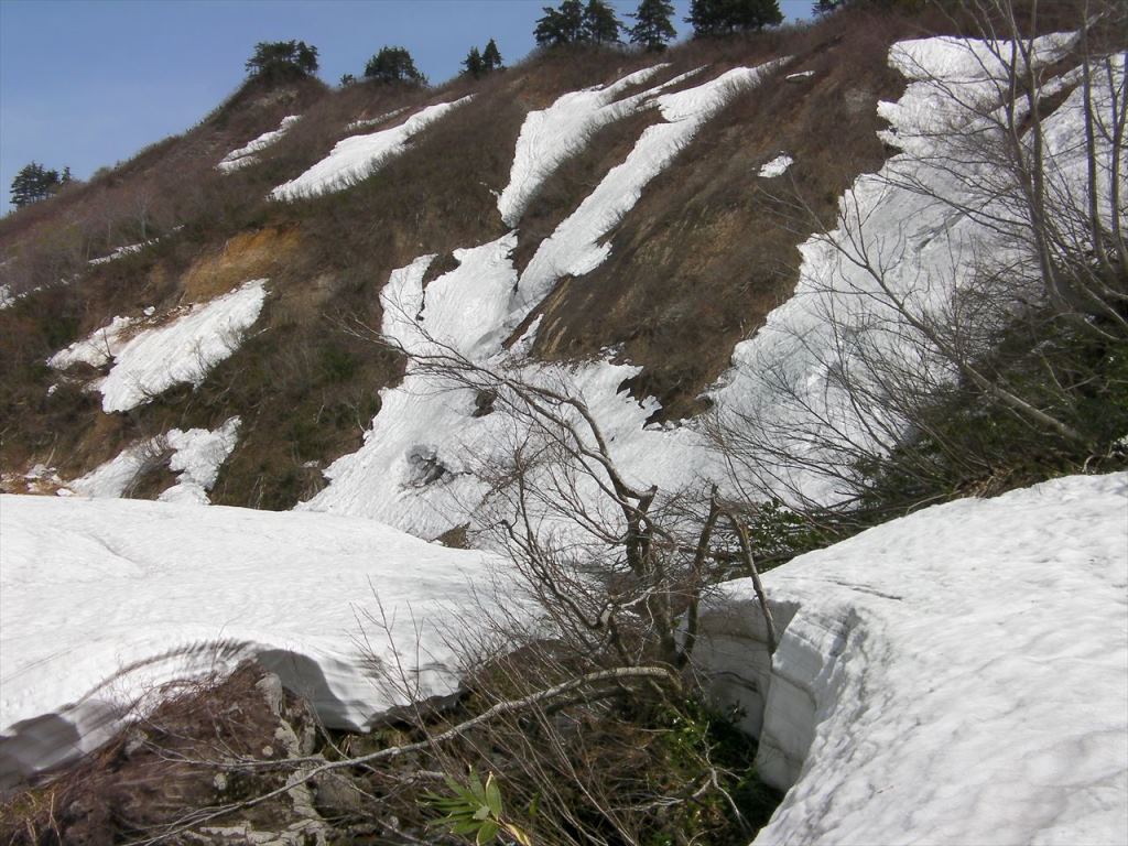 ただし,雪割れは至る所にあり,その幅も大きくなっている.