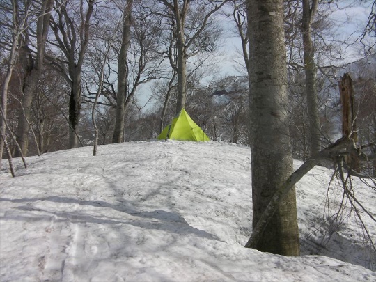 ここはブナが広がる気分のいいところで,ず〜〜と前からテントで泊まってみたいと思っていたところだ.