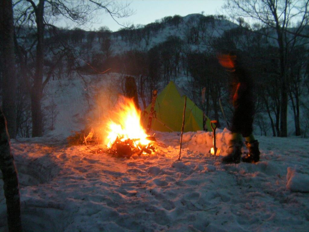 結果,2日間我々以外誰にも会わない静かな山で,おまけに焚火も楽しめた.