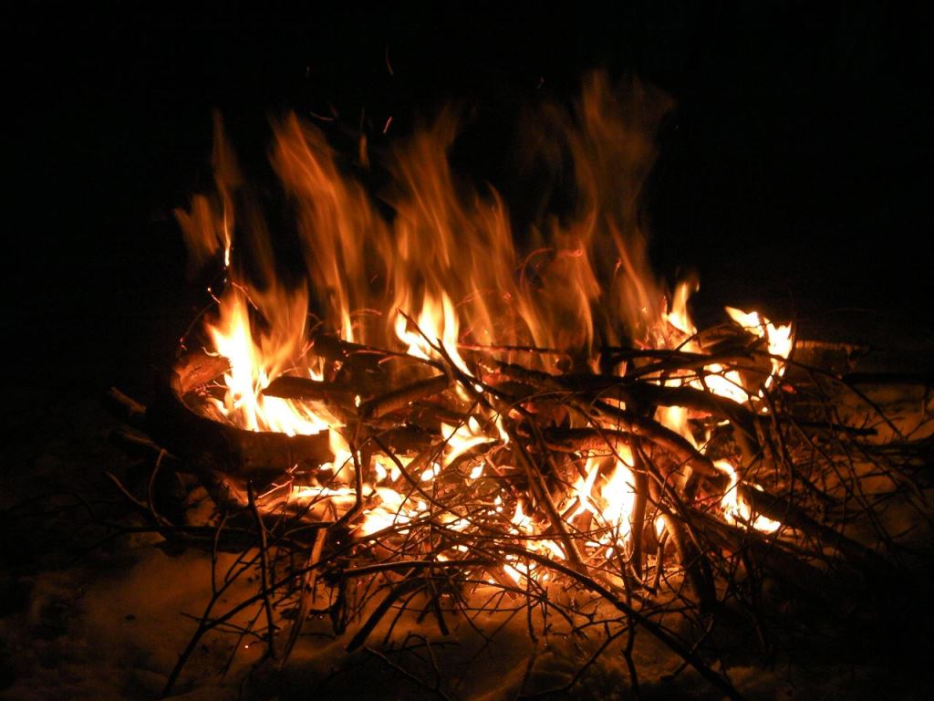 ブナの月夜に火を見つめれば,怪しく夜は更けていく.