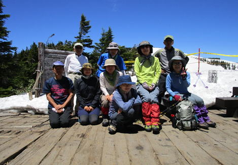 ここに荷を置いて15分で山頂へ。山座同定を楽しみ、駒の小屋に戻り昼食。