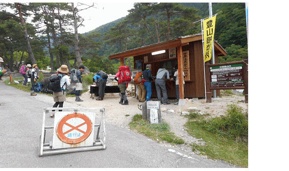 15日(土)新潟14時15分〜北陸道栄パーキング14時40分〜中房温泉駐車場19時00分