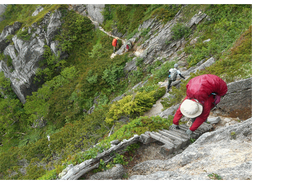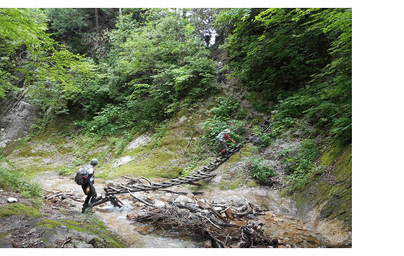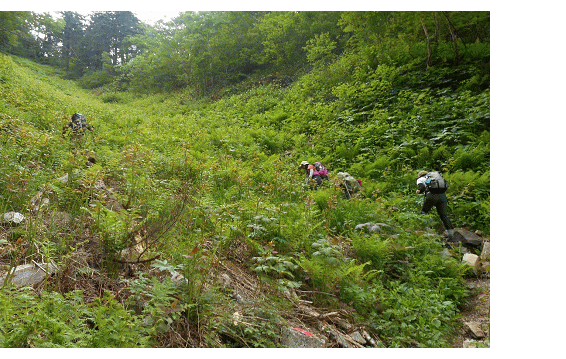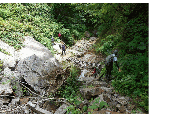 17日(月)餓鬼岳小屋7時10分〜ガレ場8時55分〜水場10時00分〜白沢登山口12時10分
