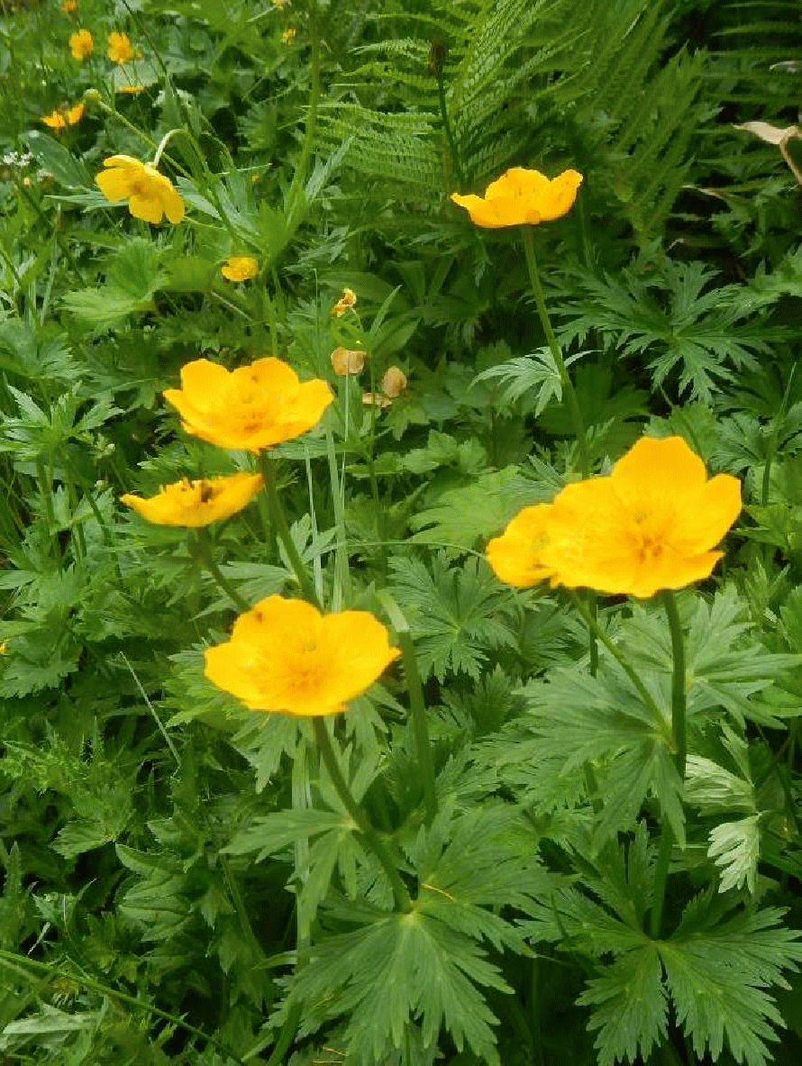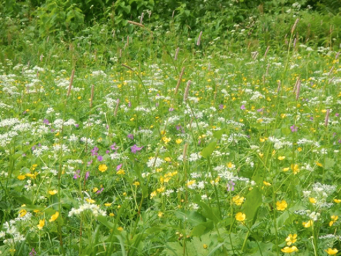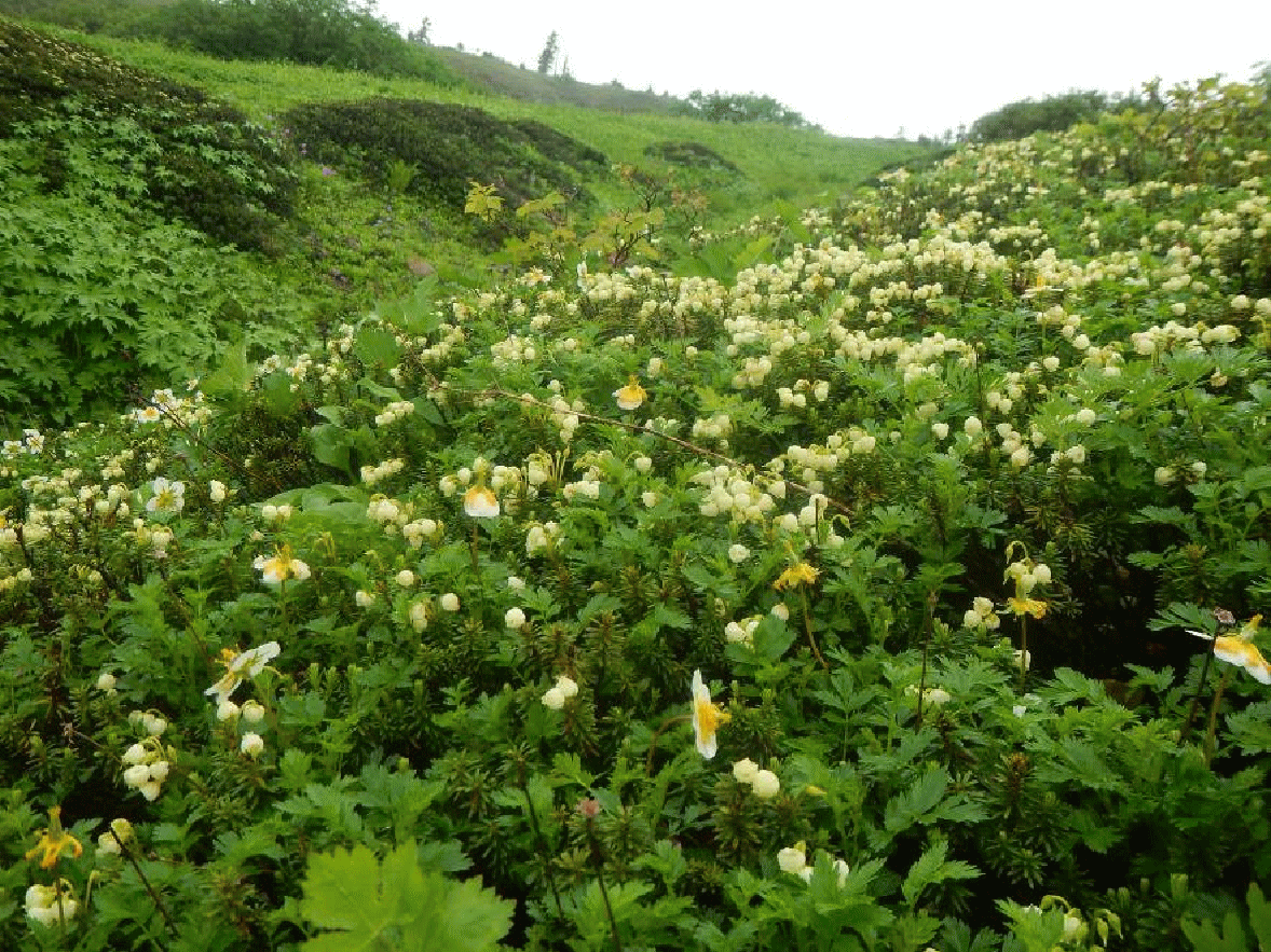 <ミヤマキンポウゲ、ハクサンフウロ、ミヤマカラマツなど>