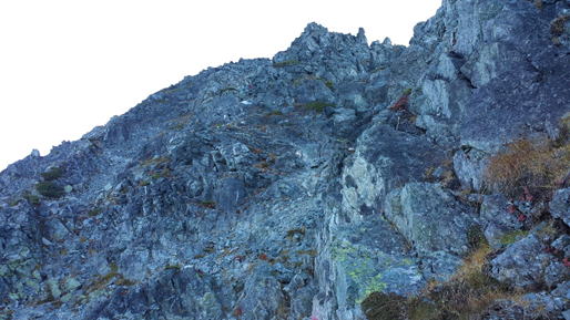 〈早月尾根最上部 別山尾根とは違い陰気な岩場〉