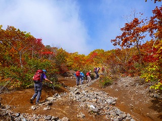 秋晴れで風もなく最高の山日和でしたが、予想外に暑くて汗だくになりながら登ります。