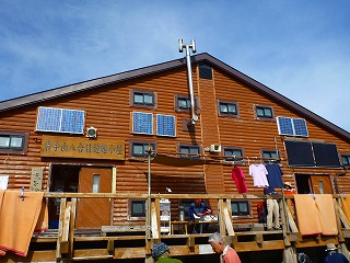 <七合目から山頂方向> <八合目避難小屋 立派で営業小屋みたい>