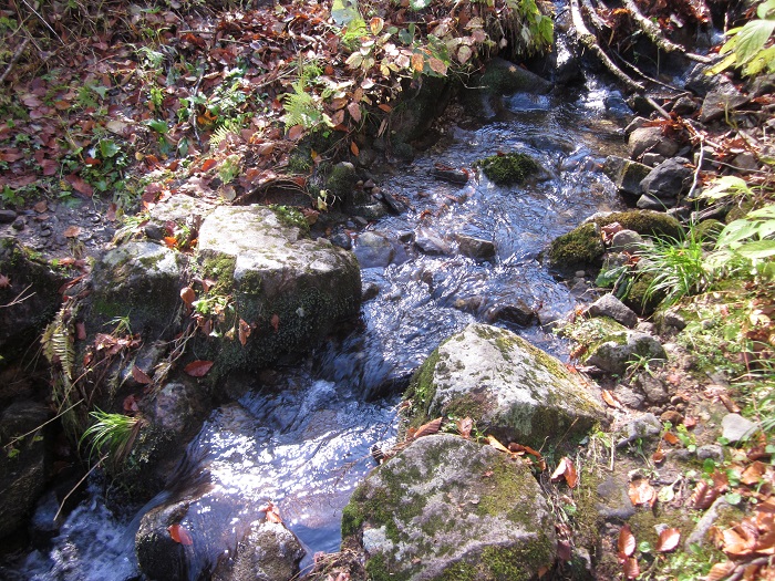 水の流れる沢に出る