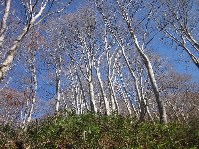 青空に映えるブナ林