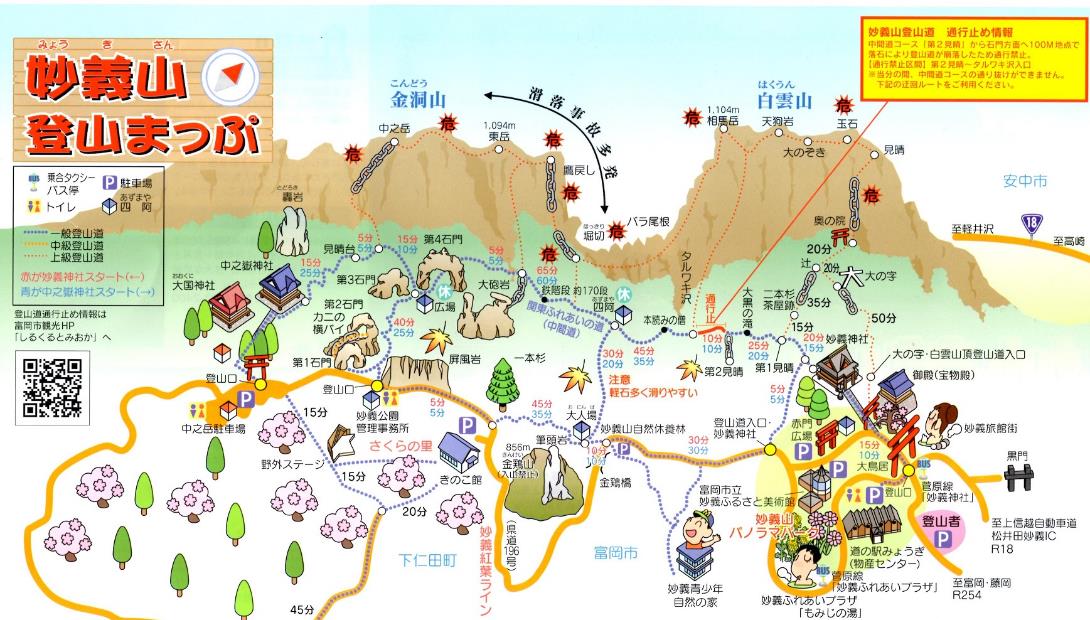 【記 録】 登山者用駐車場06:45 – 妙義神社7:00 - 奥ノ院07:55 – 天狗岩9:10 – 相馬岳9:35 – 掘切10:40