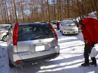 雪で道路状況が悪いことを考慮して関越道周りで向かいましたが、長岡から先はかなりの積雪で途中2回の除雪渋滞に巻き込まれ、6時間かけて登山口に到着です。運よく稲子湯から上のみどり池入口駐車場にギリギリ2台停めることができて、30分の時間短縮ができました。