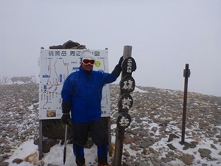 夏沢峠から上は森林限界を超えて強風になるため、山頂に向かうのは5名となりました。稜線上は暴風が吹き荒れ、雪も降って吹雪です。暴風によろめきながらも5名全員なんとか山頂にたどりつきました。