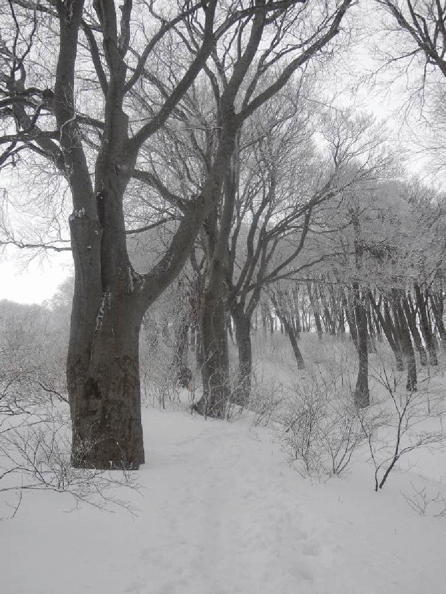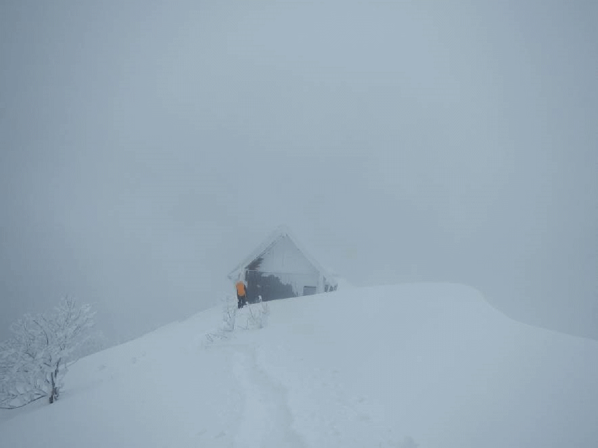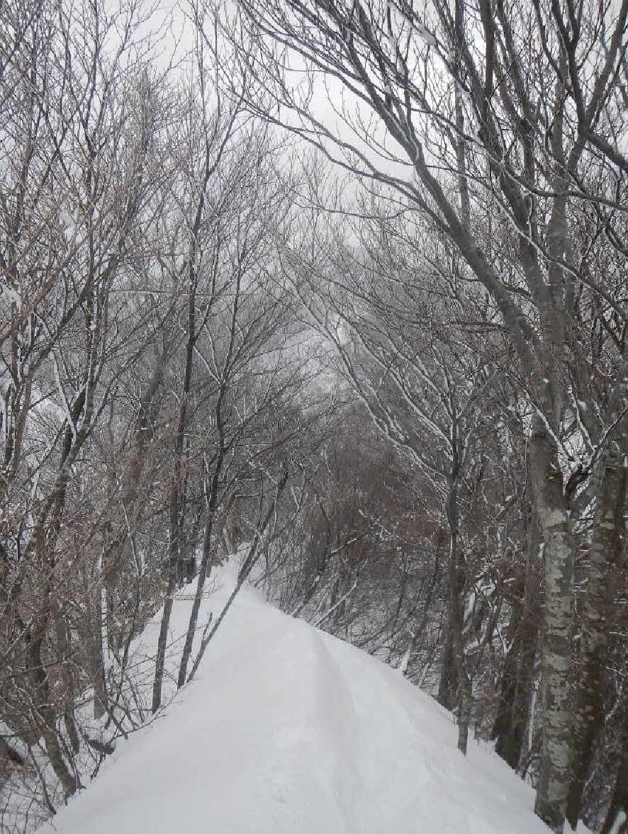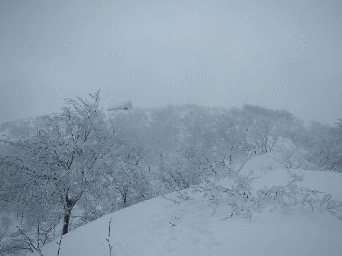山頂の天気は残念ながらガス。会った人が「山頂からの景色は素晴らしい」と教えてくれた。特に雪の晴れた日には最高の展望が、素晴らしい景色が広がるのだろう。途中のブナ林も素晴らしかった。山頂からの展望と、もう一度登ってみたい山となった。