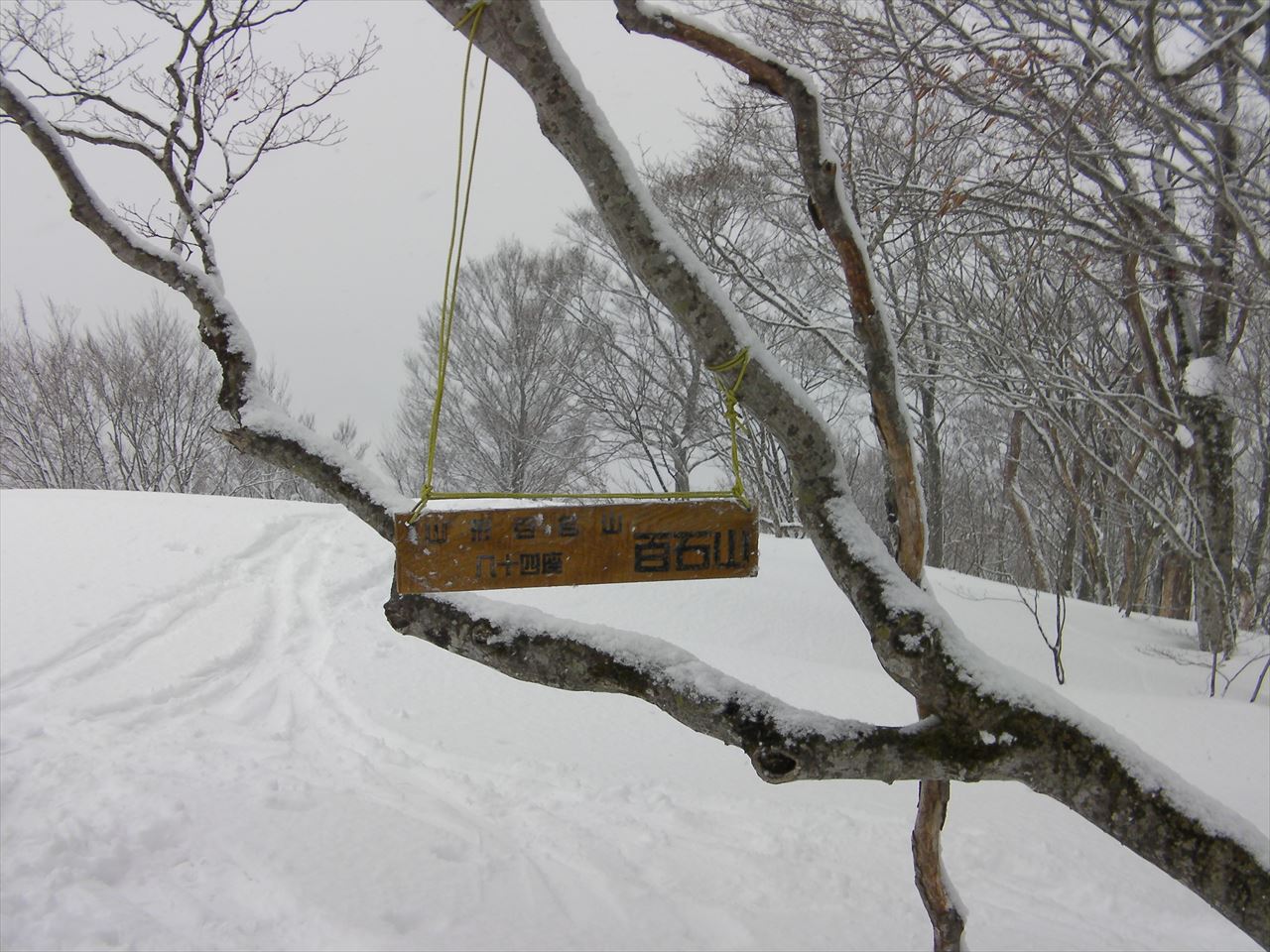 山頂手前の木に昨年はなかった「山形百名山」の標識がぶら下がっている.