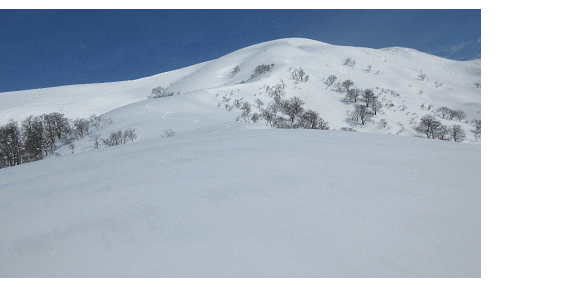 歩き始めからしっかりとしたトレースを使わせてもらい、保久礼小屋までは順調に到達する。小屋は雪に埋もれて、この辺りも例年より積雪が多い。ここからが本格的な登りになるというのにシールがダンゴになり山頂まで厳しい登行になった。