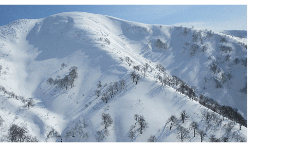 山頂からは快適な滑降を期待していたのだが、気温が上がってパウダースノーは重く粘り気の強い守門特有の厄介な雪に変わってしまっていた。おまけにスキーの滑りが非常に悪く辛い下りになってしまった。ようやく林道に出たところで大休止とし、ここから再びシールをつけて林道を1qほど登り返して二分に戻った。
